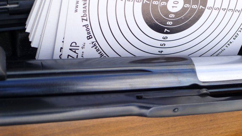 For the past few days I have been shooting it alongside my FWB150 (top of photograph). As can be seen from photographs in my first post on the 300S Junior, the cylinder and cocking lever were both pitted from rust. The gunsmith has done a good job of polishing this out before rebluing. It is not perfect, but it is much better than I had expected.